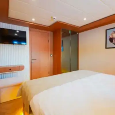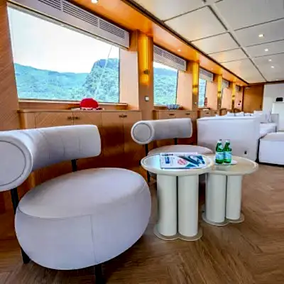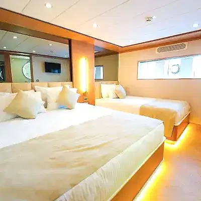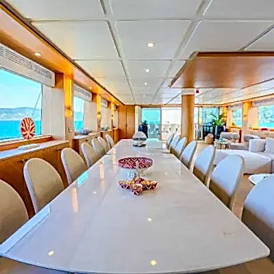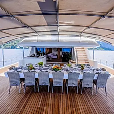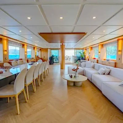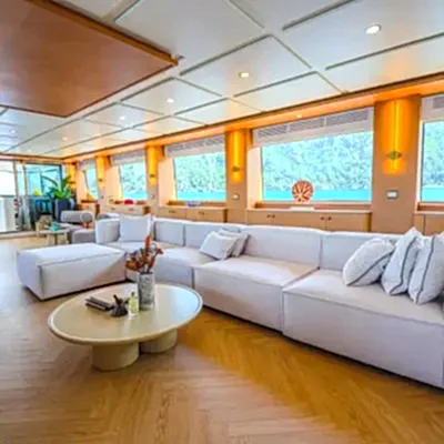 A stunning example of elegance and comfort in the motorsailer category, this unique yacht was newly launched in 2024. Stretching 50 meters in length, her features 10 luxurious cabins—8 doubles and 2 triples—welcoming up to 22 guests onboard. Designed for those who dream of the ultimate yacht holiday experience, every detail is crafted for comfort, from the modern en-suite bathrooms to the air-conditioning systems in each cabin. The spacious indoor and outdoor living areas ensure you feel completely at home while sailing the seas.