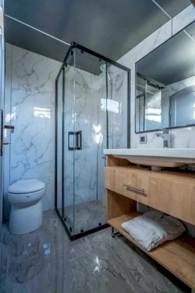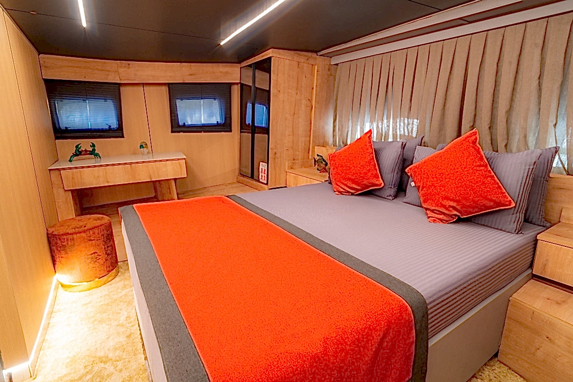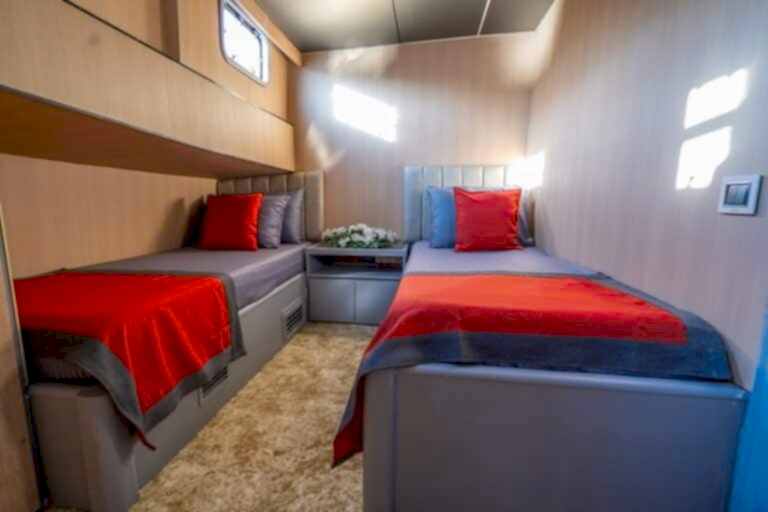Princess Alize Gulet, measuring 29 meters, offers an unforgettable sailing experience with six cabins for up to 12 guests. Two master suites, two double, and two twin cabins provide private comfort, each equipped with en-suite bathrooms and 24-hour air conditioning.
