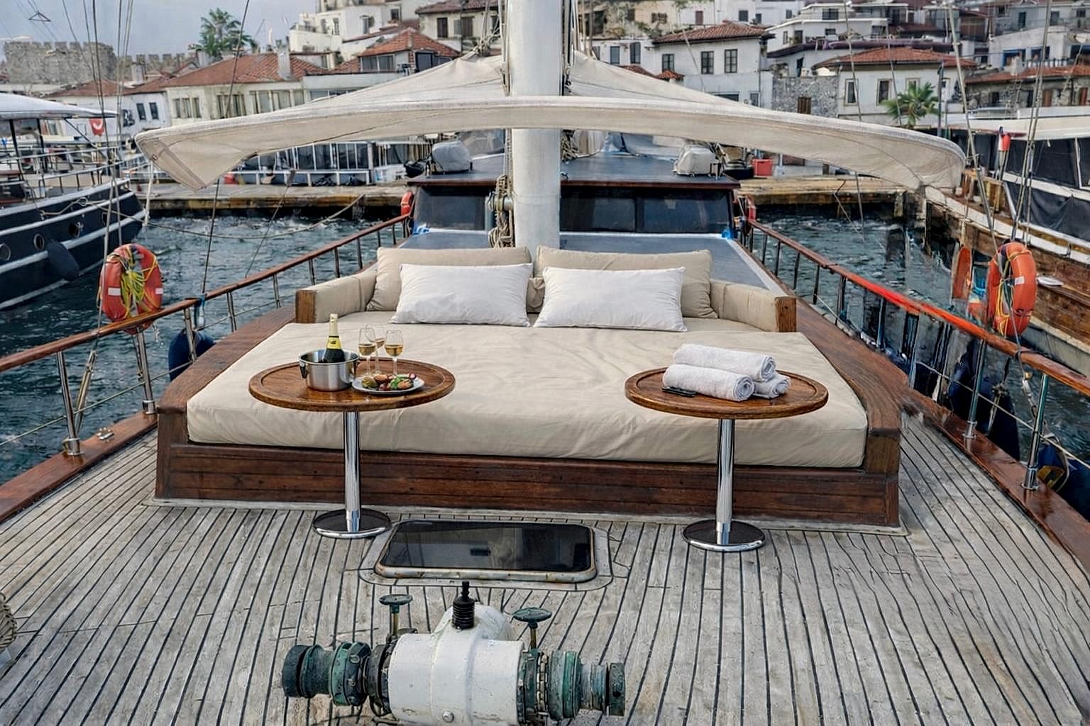 A professional crew of five—captain, chef, hostess, and two deckhands—ensures your holiday runs smoothly. Delicious meals, attentive service, and warm Turkish hospitality create a welcoming atmosphere throughout your journey.